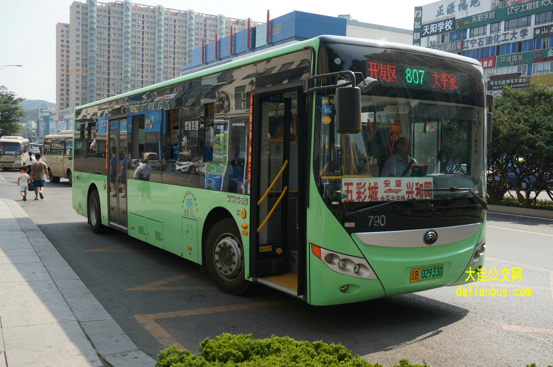 开发区轻轨站—大连民族大学—盛京大连医院—友谊商城—开发区安盛—艺术学院—万达广场—TDK—钻石9座—保税区轻轨站—开发区公安局—湾里邮电大厦—高城山—滨河公园—东城天下—湾里医院—双D港—双D高科—双D港轻轨站—珍奥核酸—小窑湾轻轨站—冰山集团—国际商务区—山口村—科技大厦—民大科技园—远洋假日养生庄园—光伸玺樾—北马山庄—神秘东方—鲁能泰山七号—鲁能泰山七号四区—金石大市场—什字街—金石翡翠—金石高中—西金村—金家沟—盐场—杨屯—万大源—双兴水产—军港—金韵水产—哨所—正明寺南—正明寺村—大李家街道—正明寺市场—老虎沟—兆海水产—水产公司—靴子礁—靴子礁东—渔家窝棚—小朱屯—大朱屯—城子村—孙屯—城子小学—刘屯—沙岭子—永清寺—太山—小东沟—大东沟—兵营—兴和园市场—兴和园 |